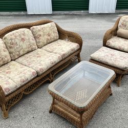 "Lloyd Flanders" Vintage ‘90s Quality Rattan Living Room Set. Couch, Chair, Coffee Table. $800Indn Riv Shrs, FL