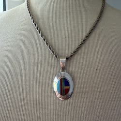 Edith James Sterling Color Blocked Pendant, Sterling Silver Inlay, Native American, Navajo Artisans, Southwestern 925 Jewelry Approx 1.75” 5.13 grams $125Hobe Sound, Florida