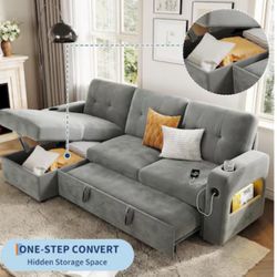 GarveeHome 84 Inch Sleeper Sofa Couch, L-Shaped Sofa, Convertible Pull Out Sofa Bed with Storage, Charging Station, Led Lights, Modern Sectional Sofa $400Port St. Lucie, FL