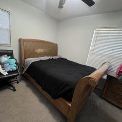 Solid wood sleigh-style queen bed frame. Includes headboard, footboard, and side rails.$250Casselberry, FL