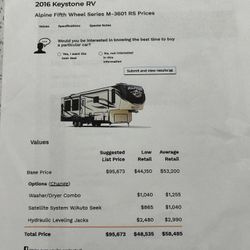 2016 Kyal Keystone Alpine Fifth Wheel Series M-3601 Rs$38,000New Smyrna Beach, FL