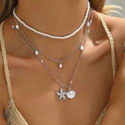 $10 for Layered Pearl Starfish Shell Necklace Silver Beach Seashell Pendant Choker Boho-3 pieces $10Daytona Beach, FL