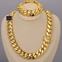 New 18k Yellow Gold Filled Cuban Link Chain And Bracelet $300Alafaya, FL