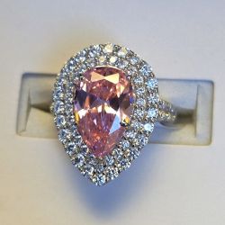 Pear Shape Pink CZ & White Double Halo Sterling Silver Cocktail Ring (NWT)$68Apopka, FL