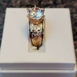 Embossed Hawaiian Plumeria Gold Tone Wide Band Fashion Ring w/White CZ Stone (NWT)$12Apopka, FL