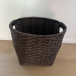 round dark brown wicker waste basket with handles. 18” round$30Sarasota, FL