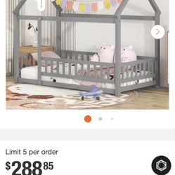 Twin Size House Floor Bed,Wooden Montessori Bed with Fence and Roof for Kids,Playhouse Bed Frame for$80Ruskin, FL