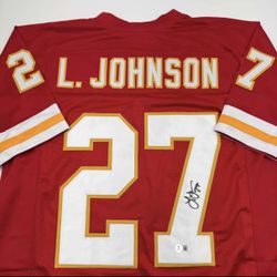 Autographed/Signed Larry Johnson Kansas City Red Football Jersey Beckett $100Bradenton, FL