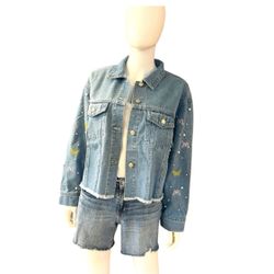 Peach Love California Denim Butterfly Pearl Accent Jacket Sz Medium $20Venice, FL
