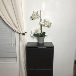 Single stem silk faux white orchid plant in silver pot.$15Bradenton, FL