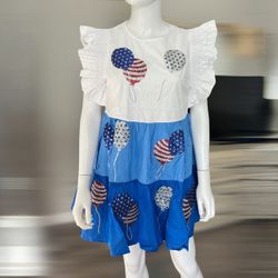Peach Love California Cutest Patriotic Sequin Balloon Dress Sz Medium $24Venice, FL