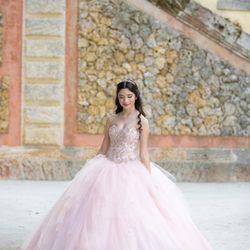 Elegant Strapless Pink Ball Gown Wedding Quinceañera Pink Gold Dress$300Sarasota, FL