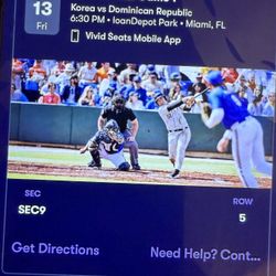 WBC Tickets Dominicana Republic Vs Korea $120Hollywood, FL