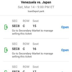 WBC Venezuela Vs Japan Two Tickes $300Pembroke Pines, FL