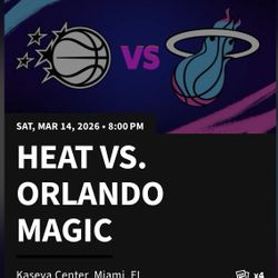 2 Miami Heat Vs Orlando Magic Tickets Tonight 3/14$40Aventura, FL