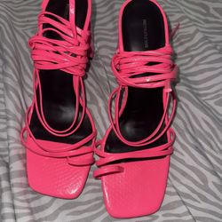 PrettyLittleThing Pink PU Square Toe Knot Lace Up Flared High Heeled$20Miami, FL