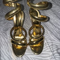 gold-colored, spiral ankle-wrap stiletto high heels "Nikia-233" by Liliana$20Miami, FL
