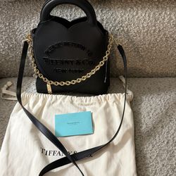 Tiffany&Co. Return To Tiffany Black Leather Purse Raised Logo Gold Chain/Charms $600Fort Lauderdale, FL