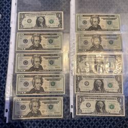 One Dollar Con Estrellas Y De 20 Con Estrellas Y Numero Raros $0Miami, FL