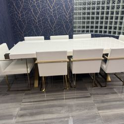 Modern High-Gloss White Dining Table + 8 Chairs – White & Gold – Seats 8$499Miramar, FL