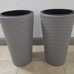 *** REDUCED *** PAIR of 24" Gray Textured Resin Planters (with Irrigation) @ Lasting Creations$70Oakland Park, FL