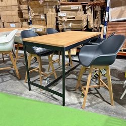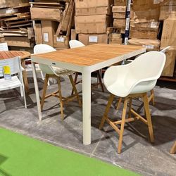 5PC High Top Patio Bar Set – Aluminum & Teak Wood | BRAND NEW | Heavy Duty Commercial Grade | Modern Outdoor | Delivery Available