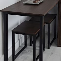 3-Piece Dining Table Set Modern Bar Table Set with a Table and 2 Stool Pub Dining Height Table Set with a Wood Grain Tabletop and Black Metal Frame fo$50Miami, FL