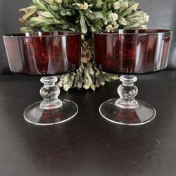 MCM "LUMINARC Verrerie d'Arques France Red Ruby Parfait-Juice Clear Ball & tube Glass Stem Set 4$45Zephyrhills, FL