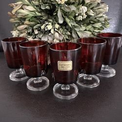 MCM "LUMINARC Verrerie d'Arques France Red Ruby Cordial Clear Stem Set 5.$55Zephyrhills, FL