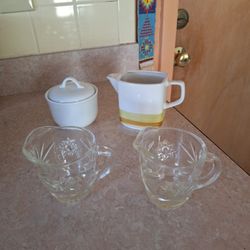 2 Glass Creamers, One Stoneware Creamer and a Sugar Bowl with Lid$2New Port Richey, FL