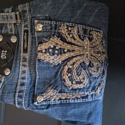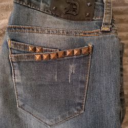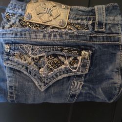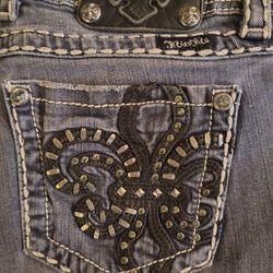 Miss Me Size 31 Distressed Embellished Western with Rhinestone Sequin Studs Signature Crop Raw Hem Inseam 27$25Tarpon Springs, FL