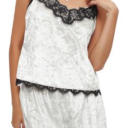 TIK TOK Sexy Velvet Two Piece Pajamas, Lace Trim Cami Tops, Short, White Lg *NEW$10Zephyrhills, FL