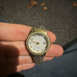 Accutime gold-tone women's quartz watch with a rhinestone-encrusted bezel and a white dial$20New Port Richey, FL