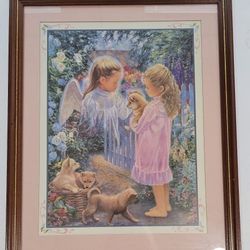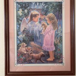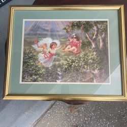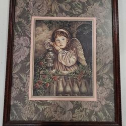 Vintage Home Interiors And Gifts Angel Print. Excellent. Wood tone frame with gold edging. Size including frame is 18” x 22”.$17Tampa, FL