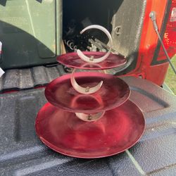Antique 1875-1915 Ruby Glass Brides Bowl, Candle Holders, Brass Pedestal,Marble Base.$150Tampa, FL
