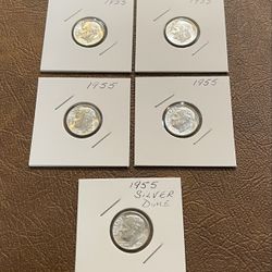 Lot Of 5 Silver 1955 Roosevelt Dimes Brilliant Uncirculated. $35Land O' Lakes, FL