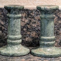 VINTAGE GREEN MARBLE TAPER CANDLE HOLDERS