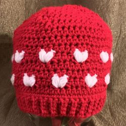 Hand-Crocheted Red/White Hearts Cloche Beanie $15Brooksville, FL