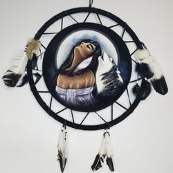 Wolf Women Dream Catcher Hand Painted Canvas Wall Art Feather Beads Large 25"$50Webster, FL