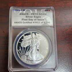 2015-W Anacs PR70 DCAM Silver Eagle First Day Of Issue #0411/8,195$120Hudson, FL