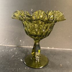 FENTON Vintage Green-Olive Glass Thumbprint Ruffled-Edge Pedestal Candy Dish (Height: 6-1/4”)$15Dade City, FL