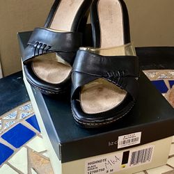 Liz Claiborne HIGHNOTE Women’s Black Leather Slide Wedge Sandals with Box sz 8$20Portland, OR