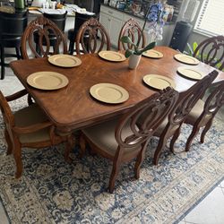 Large dinning table with 8 cushioned chairs made with rock solid,brown colour$450San Antonio, FL