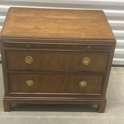 Drexel Heritage Campaign Style nightstand brass accents burlwood Beautiful . This is a gorgeous nightstand that is used in good condition with some m$200Wesley Chapel, FL