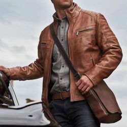 Udo Waxed Lambskin Leather Moto Jacket - Brown Leather Jacket$300Tampa, FL