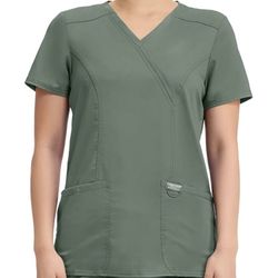 Cherokee Scrubs Top for Women Mock Wrap with 3 Pockets, Soft Pewter, XS *NEW*$10Zephyrhills, FL