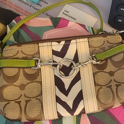 Coach Zebra stripe and lime green trim wristlet/ clutch$50Spring Hill, FL