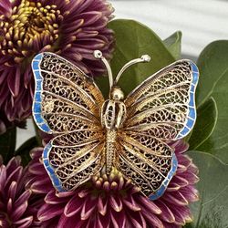 Vintage Blue Enamel Fillagree Goldtone Butterfly.$35Zephyrhills, FL