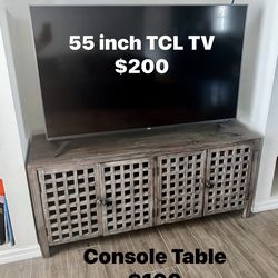 55 inch TCL flatscreen with modern console table$300Valrico, FL