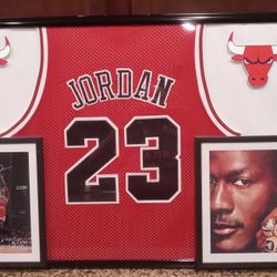 MICHAEL JORDAN HALL OF FAMER, OF THE CHICAGO BULLS, STITCHED, FRAMED JERSEY WITH SIGNED PICTURE,COA.$220Wimauma, FL
